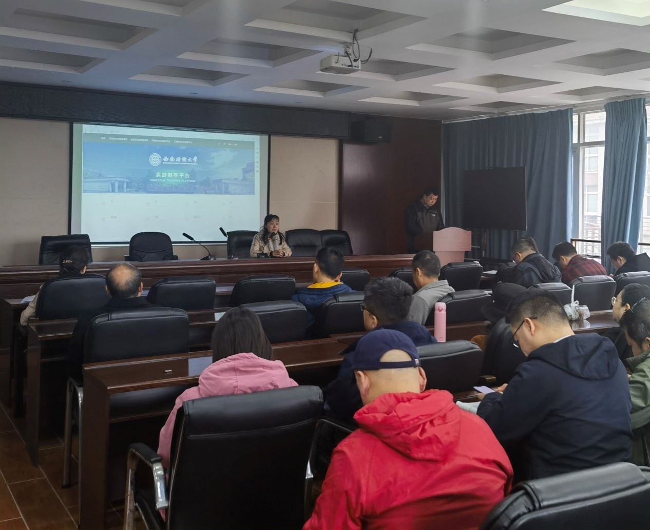 培训讲师林飞详细介绍了实践教学平台的功能特点、操作方法及使用技巧,并通过生动的案例展示和现场操作演示,让老师们对实践教学平台有了更加直观、深入的认识。同时,林飞老师还针对任课老师在使用过程中可能遇到的问题进行了详细解答,确保大家能够熟练掌握平台的使用方法。