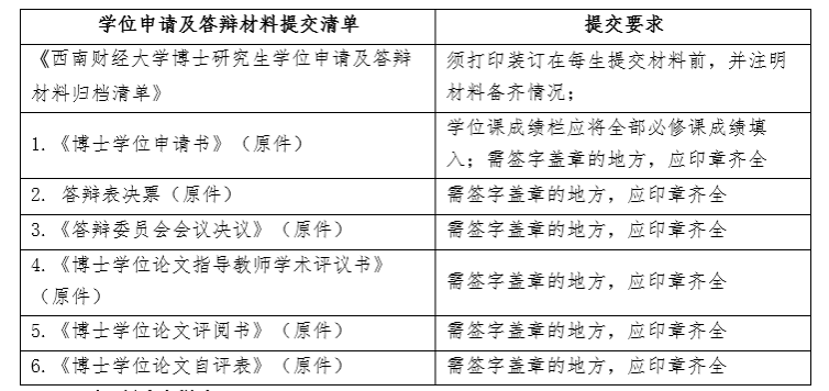 博士研究生学位申请及答辩归档材料须严格按下列清单将原件按顺序装订后交至学位办(上述材料各学院、研究院自行复印留存),具体包括: