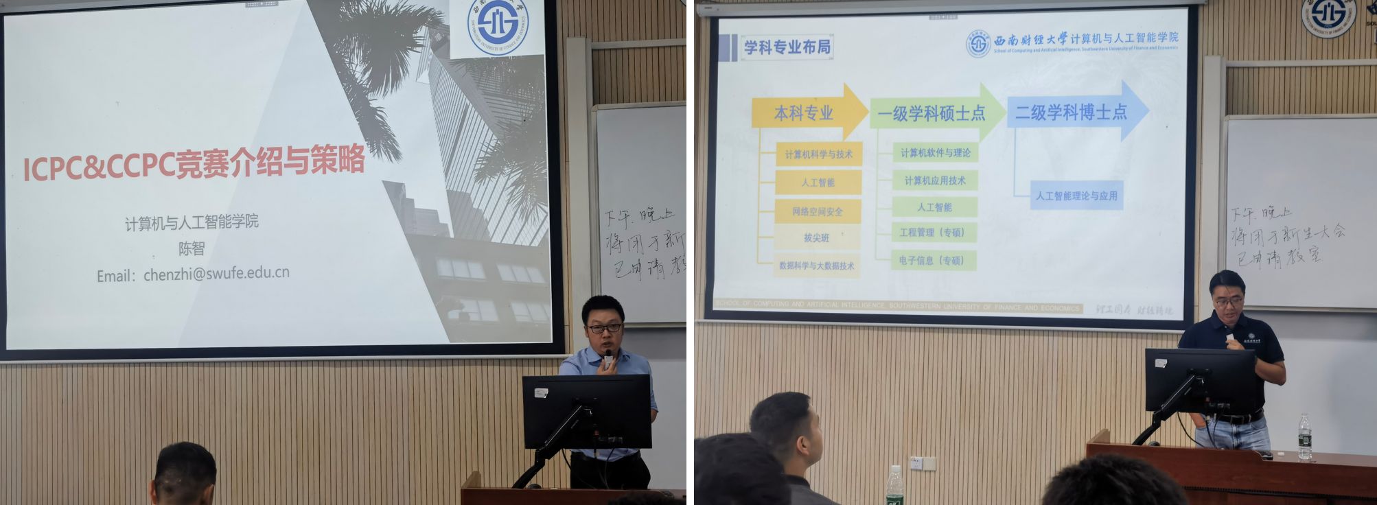 9月5日下午,本科公司产品指导委员会主任黄迟及竞赛指导老师陈智老师分别为新生带来了人才培养与专业学习的深度解析与竞赛动员,本科教学秘书杨御龙则详细解读了本科培养方案及推免政策,为新生指明了前行的方向。