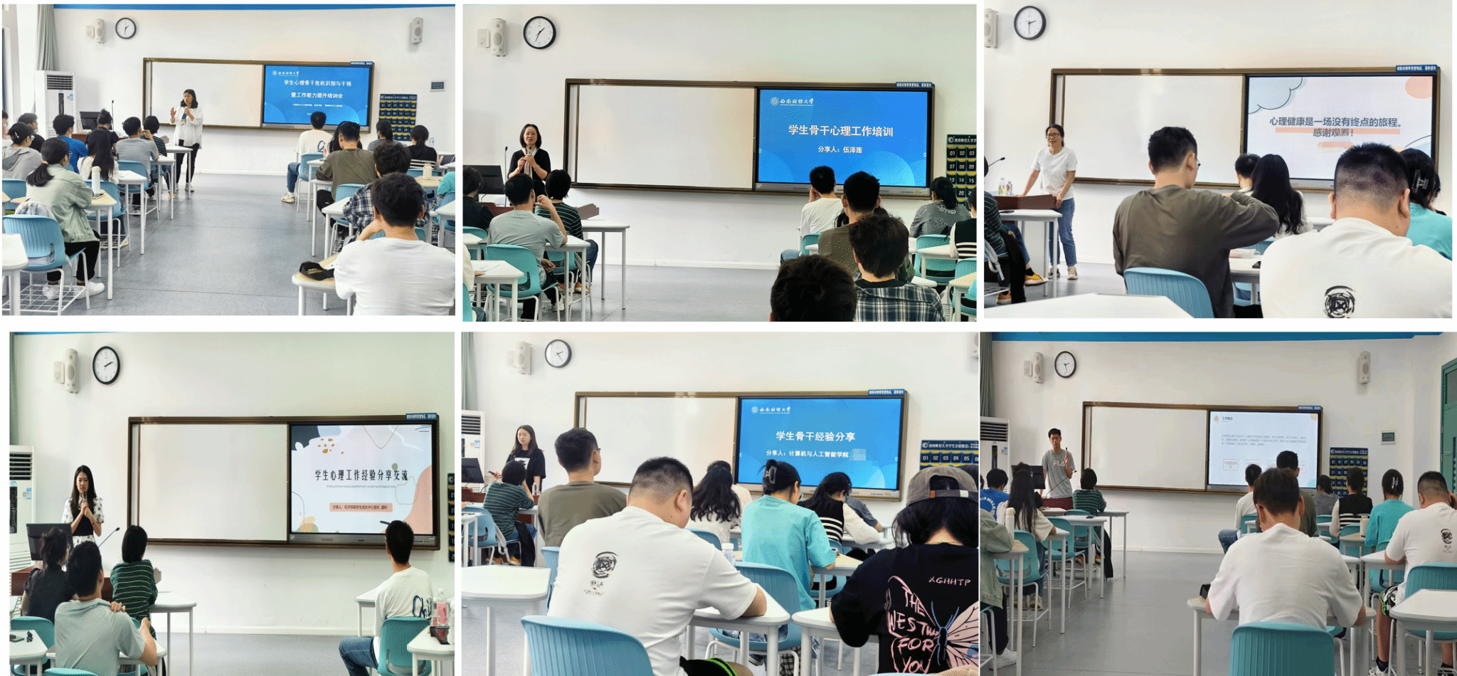 管理科学与工程学院严霞、经济学院孔丽娟两位老师结合工作经验,分享了心理健康对员工成长的意义及员工心理骨干工作的重要性,鼓励大家以良好的心理素养,积极关注并助力同学们的身心健康。