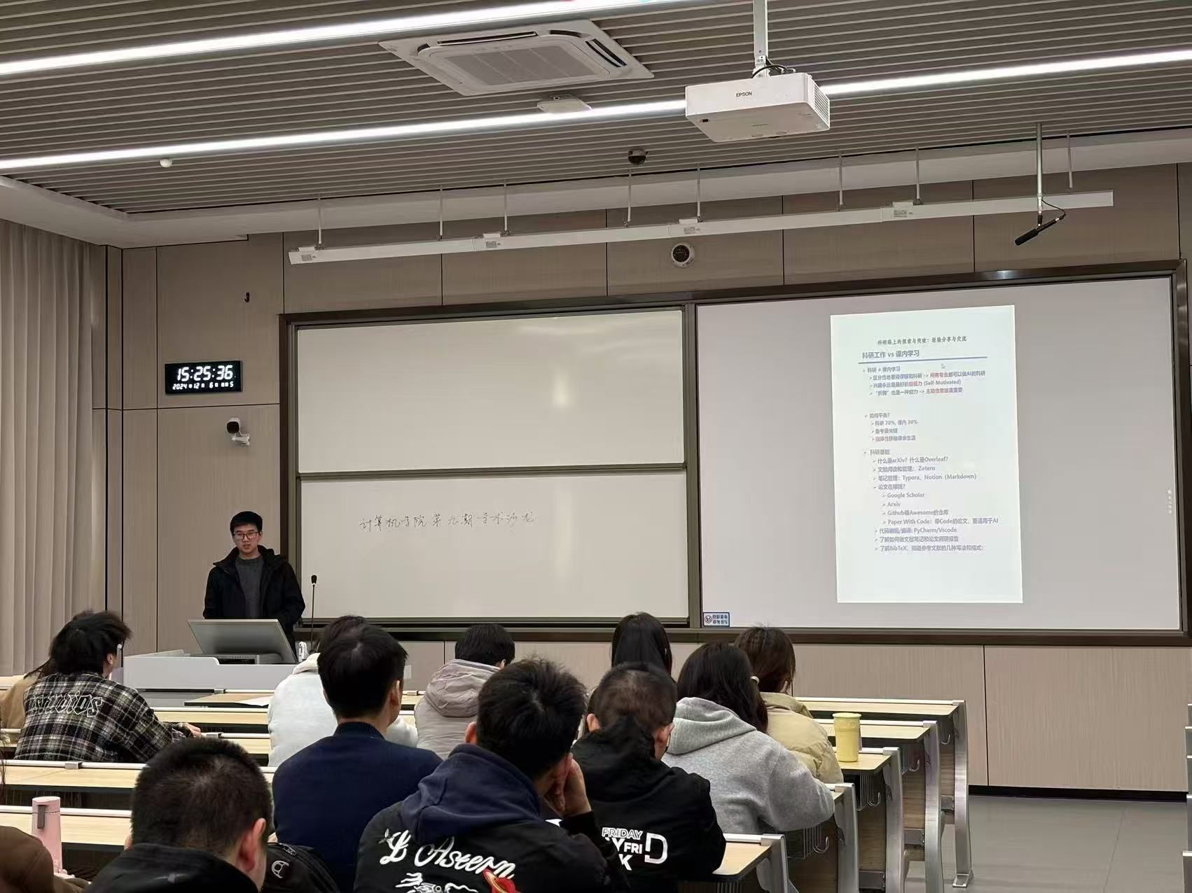 接着,李永豪以“科研路上的探索与突破:经验分享与交流”为主题,分享了他在科研道路上的宝贵经验。他介绍了在科研过程中坚持探索和勇于突破的重要性,并分享了特征选择、多标签学习等研究方向的具体经验。李博士强调,在科研中,我们要勇于尝试新的方法,不断突破自己的舒适区。他鼓励同学们在面对科研难题时,要有坚持不懈的精神和勇于创新的思维。他的分享不仅为同学们提供了科研方法上的指导,也激发了同学们对科研工作的热情。